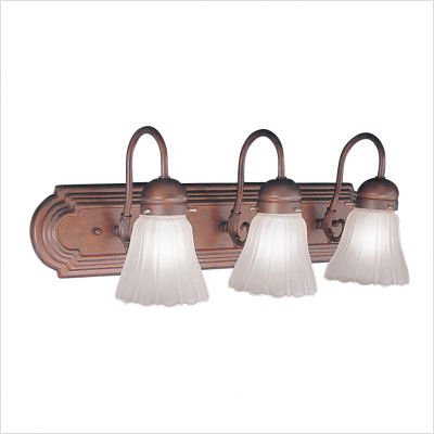 1103A-18 Features: -Three light bath vanity. -Belmont collection. -Weathered brick finish. -Satin glass. -Indoor use. Specifications: -Accommodates (3) 100W medium base bulb. -Overall dimensions: 8.5'' H x 24'' W x 8'' D.