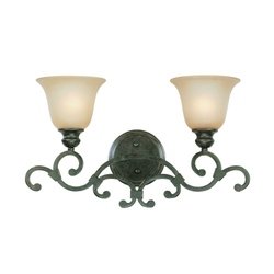 The Old Burlington is tall in stature and was designed with those high ceiling in mind. This stylish look uses a fluted wood like column to create a rich feeling of beauty and grace. The iron like scrolling supports the body of the fixture creating an eye pleasing look for many homes. The amber etched painted glass complimented with English Toffee finish makes this family lights a real people pleaser.,Bulb Type: Medium Collection: Old Burlington Energy Star Compliant: No Extension: 8-1 2 Finish: English Toffee Fixture Type: Vanity Glass: Painted Etched Height: 13 Light Direction: Up Down Material: Metal Number of Lights: 2 Style: Traditional Classic Type: Bathroom Lighting Voltage: 120 Wattage: 100 Width: 22
