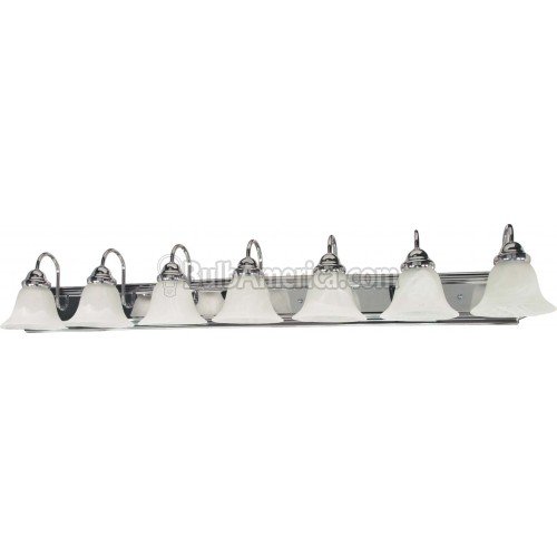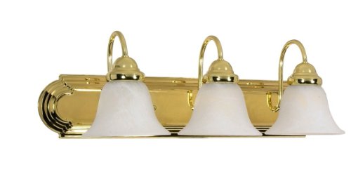 54-3850 | Three-light wall/bath light fixture with amber glass | Projection: 7 inches | Three 60-watt A19 medium bulbs | 20-1/4 x 8-3/4 |