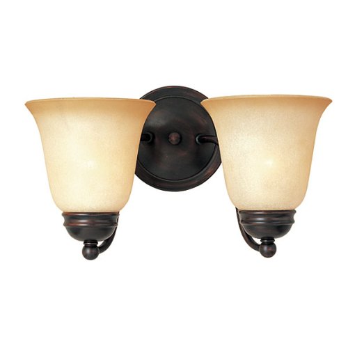 54-3827 | Two-light wall/bath light fixture with amber glass | Projection: 7 inches | Two 60-watt A19 medium bulbs | 12-1/4 x 8-1/4 |